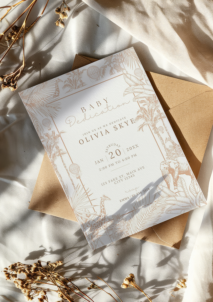 For invitations: You will receive a PDF with a link to the editable template on Canva, allowing you to customise text and colours.
